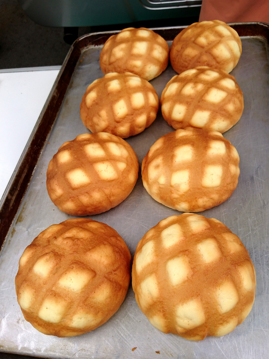 焼き立てメロンパンは「表面がサクサクでとても美味しい!」と大好評でした。