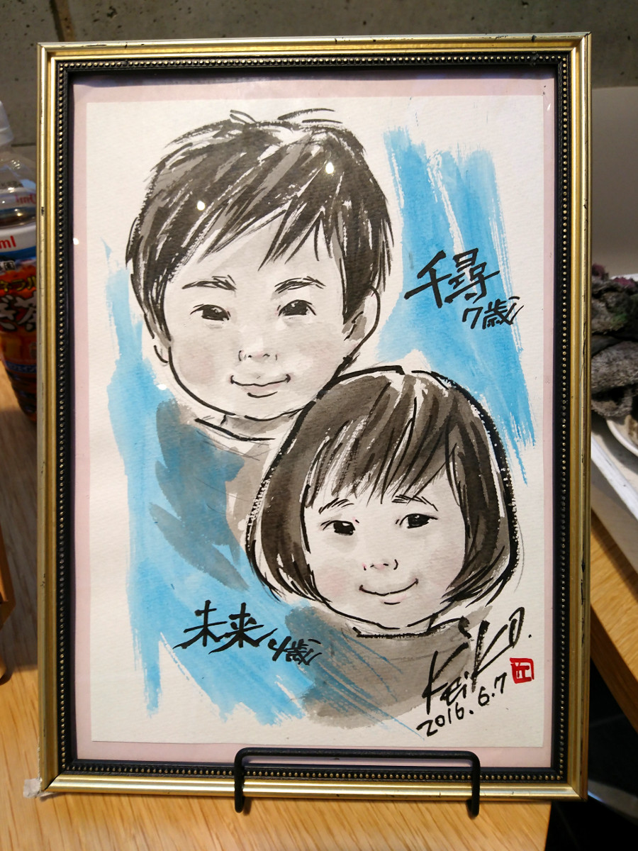 描き上がった似顔絵を、満面の笑顔で受け取ってお帰りになる姿がとても印象的でした。